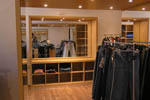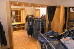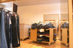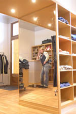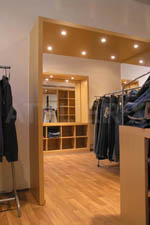 | Poměrně malá prodejna outletové módy sestává z dvou místností spojených otvorem, který je lemován mobiliářem s polepem zrcadly.