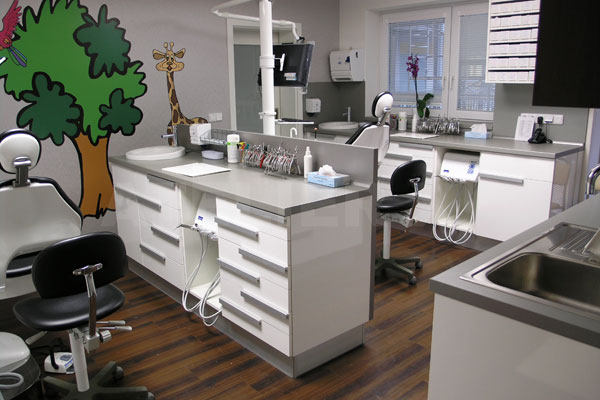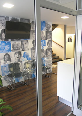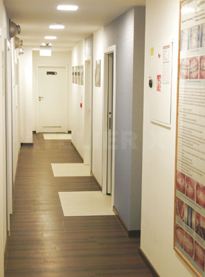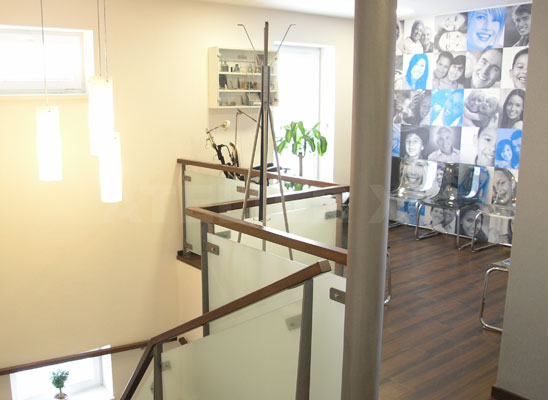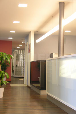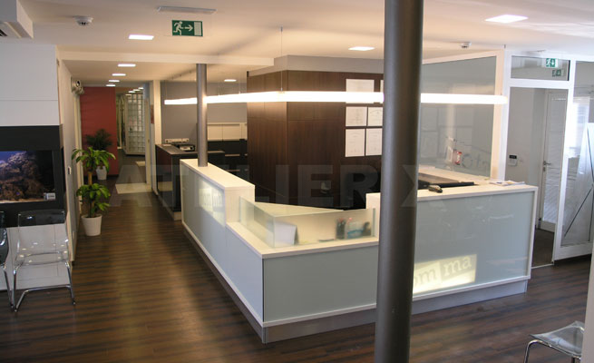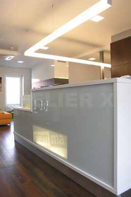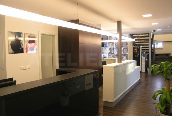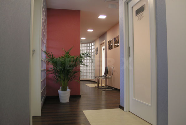| Privátní klinika s 12ti ordinacemi na 550m2 ve dvou podlažích. Podlaha PVC dezénu tmavého ořechu. Mobiliář ordinací v bílé barvě v kombinaci s ořechem, pracovní desky v dezénu titan. Recepce o dvou hlavních segmentech ve dvou barvách. O barevné spektrum se starají pvc tapety ve světle modré, rudé, stříbrné, zlaté, béžové a bordó.